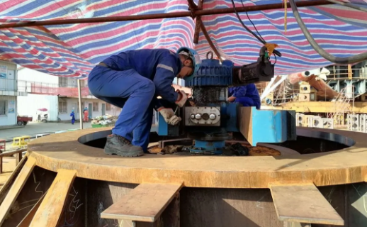 武船集团高质量完成了基座上船焊接前粗镗孔工作,外径φ3400毫米、内径φ2670毫米的基座内孔和上平面加工一次成型,报检一次合格,受到质检部门及船东的一致好评,被评为“优等品”。